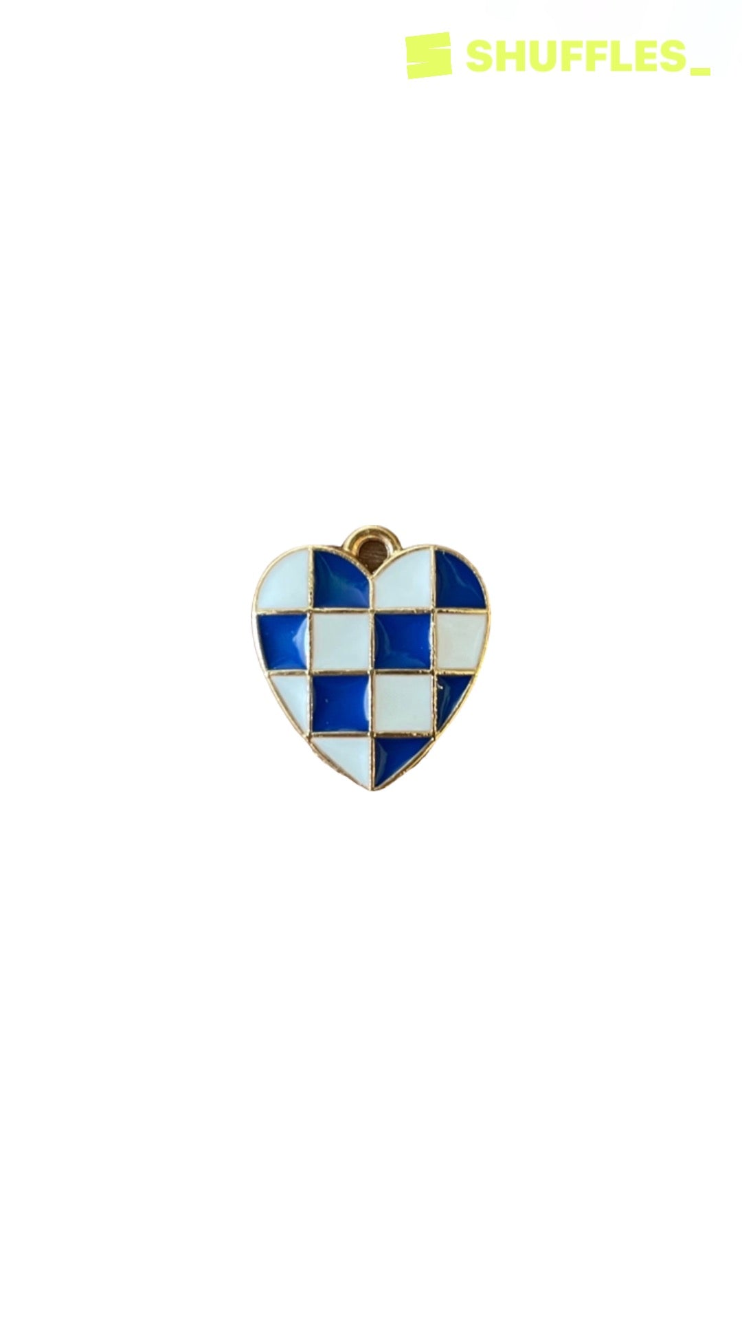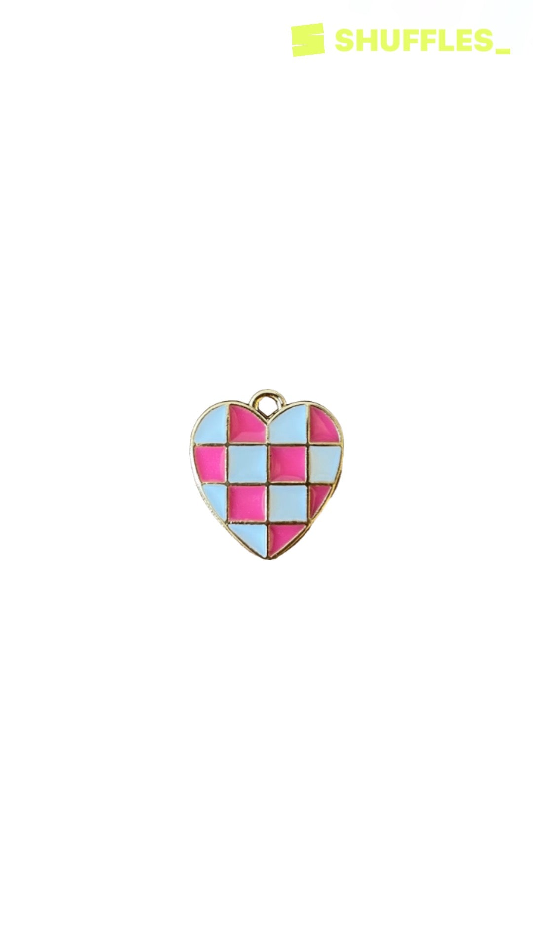 14K gold filled checkered heart. Blue, black, and pink.